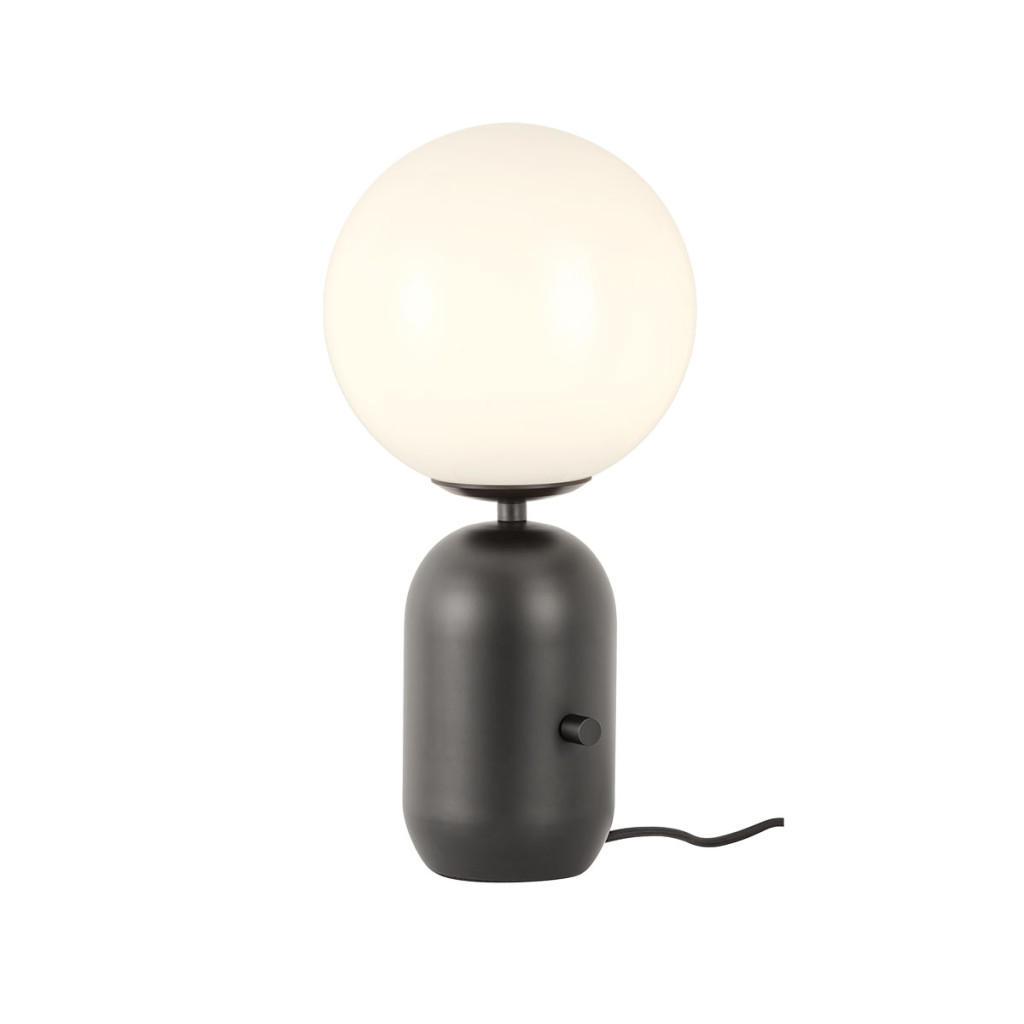REDO 01-2930 Asztali lámpa HELIOS VE 1X28W E14 MATT BLACK/WHITE GLASS D150 (5.1.1)