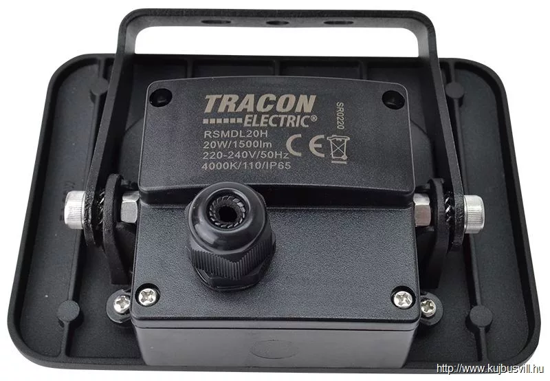 TRACON RSMDL20H LED fényvető beépített bekötődobozzal (kábel nélkül),fekete 220-240V AC, 20W, 4000K, IP65, 1600lm, EEI=G