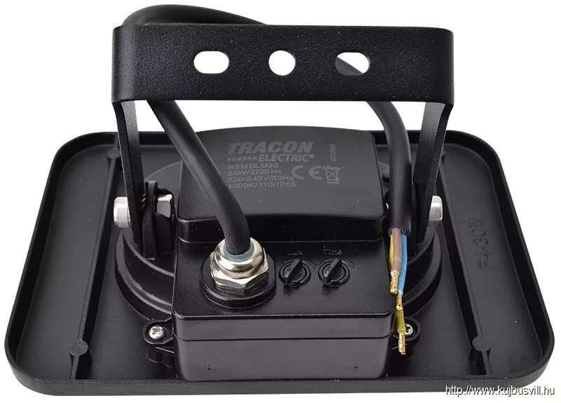 TRACON RSMDLM30 Fekete SMD fényvető mozgásérzékelővel 30W, 4000K, IP65, 220-240V AC, 2700lm, 110°, 3-10m, EEI=F