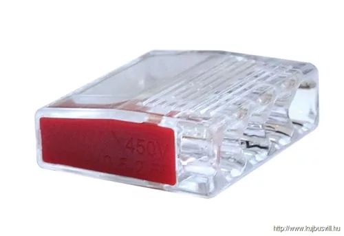 TRACON RVO2,5-4 Csavar nélküli vezetékösszekötő, átlátszó/piros 4×0,5-2,5mm2, 450VAC, max. 16A