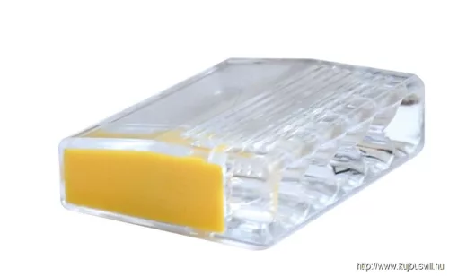 TRACON RVO2,5-5 Csavar nélküli vezetékösszekötő, átlátszó/sárga 5×0,5-2,5mm2, 450VAC, max. 16A