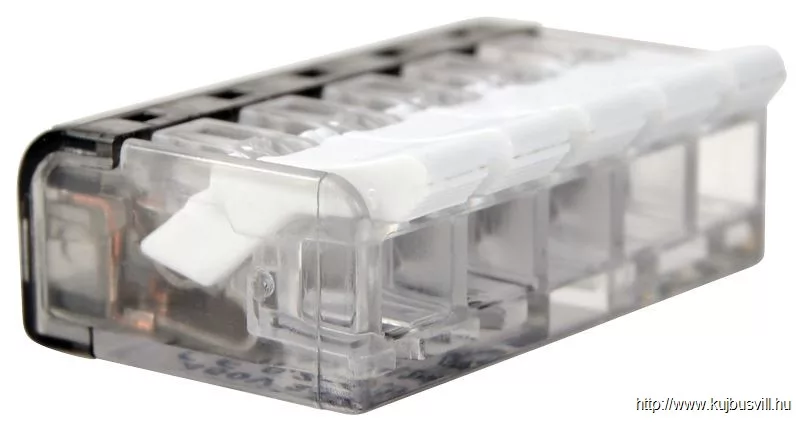 TRACON RVON5 Csavar nélküli vezetékösszekötő, nyitható átlátszó 0,2-4mm2, 32A, 450VAC 5P