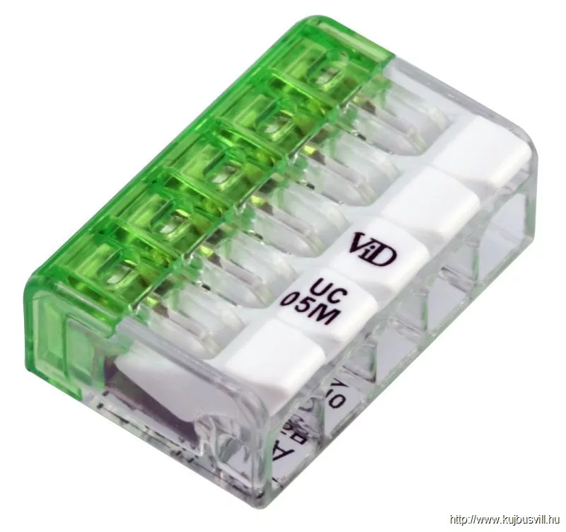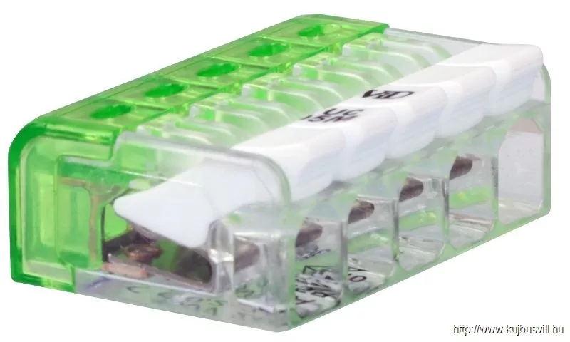 TRACON RVONK5 Csavar nélküli vezetékösszekötő, nyitható átlátszó 0,2-2,5mm2, 24A, 450VAC 5P