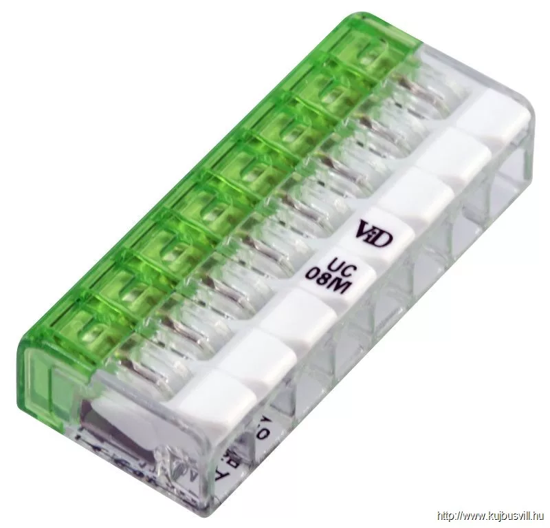 TRACON RVONK8 Csavar nélküli vezetékösszekötő, nyitható átlátszó 0,2-2,5mm2, 24A, 450VAC 8P
