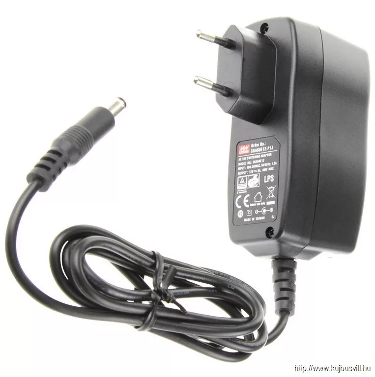 TRACON SGA60E12-P1J Dugaszolható, műanyag házas tápegység 90-264 VAC / 12 VDC, 60 W, 0-5 A