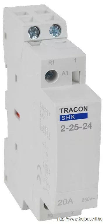 TRACON SHK2-25-24 Installációs kontaktor 24V AC, 50Hz, 1 Mod, 2×NO, AC1/AC7a, 25A