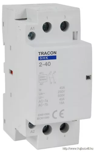 TRACON SHK2-40 Installációs kontaktor 230V AC, 50Hz, 2 Mod, 2×NO, AC1/AC7a, 40A