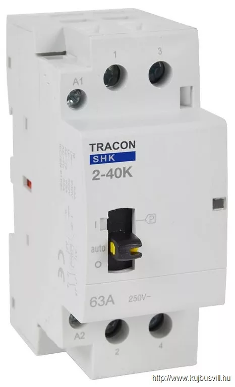 TRACON SHK2-40K Installációs kontaktor 230V AC, 50Hz, 2 Mod, 2×NO, AC1/AC7a, 40A