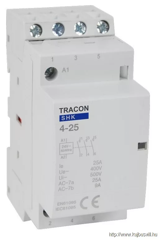 TRACON SHK4-25 Installációs kontaktor 230V AC, 50Hz, 2 Mod, 4×NO, AC1/AC7a, 25A