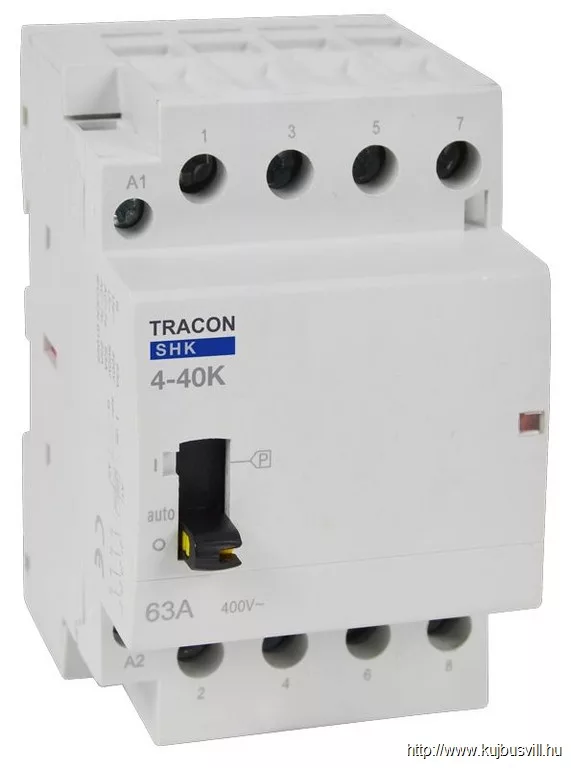 TRACON SHK4-40K Installációs kontaktor 230V AC, 50Hz, 3 Mod, 4×NO, AC1/AC7a, 40A