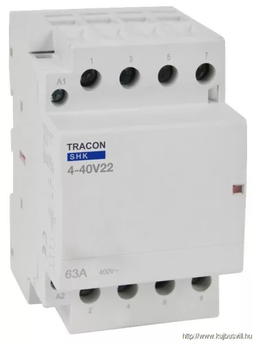 TRACON SHK4-40V22 Installációs kontaktor 230V AC, 50Hz, 3 Mod, 2×NO+2×NC, AC1/AC7a, 40A