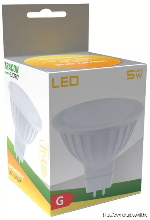 TRACON SMDMR165W Műanyag házas SMD LED spot fényforrás 12 V AC/DC, MR16, 5 W, 300 lm, 2700 K, 110°, EEI=G