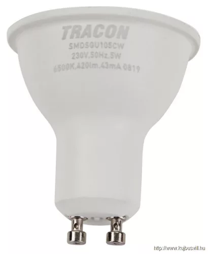 TRACON SMDSGU105CW Műanyag házas SMD LED spot fényforrás SAMSUNG chippel 230V,50Hz,GU10,5W,470lm,6500K,120°,SAMSUNG chip, EEI=F