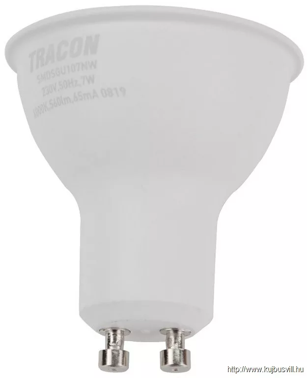 TRACON SMDSGU107NW Műanyag házas SMD LED spot fényforrás SAMSUNG chippel 230V,50Hz,GU10,7W,630lm,4000K,120°,SAMSUNG chip, EEI=F