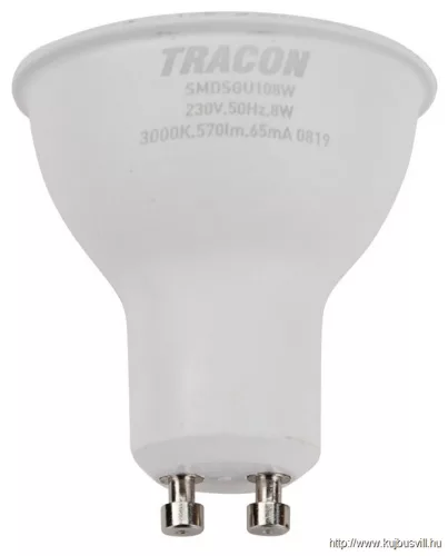 TRACON SMDSGU108W Műanyag házas SMD LED spot fényforrás SAMSUNG chippel 230V,50Hz,GU10,8W,710 lm,3000 K,120°,SAMSUNG chip, EEI=F