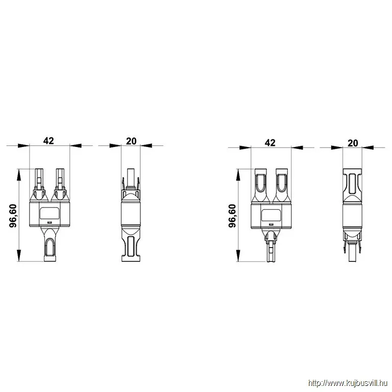 TRACON SOLAR1-2AB Solar panel ipszilon csatlakozó, 1 pár 1500V DC, 20A, 2.5-6mm2, IP67