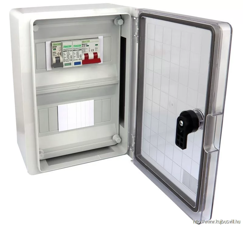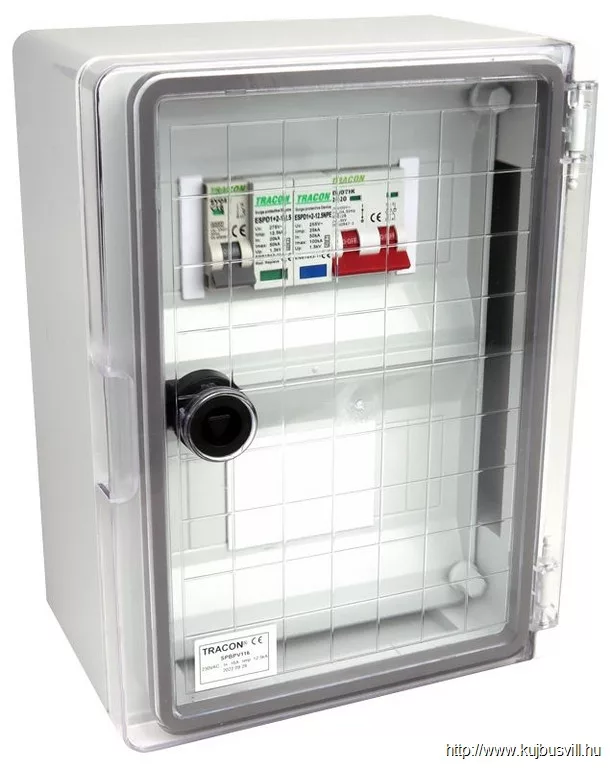 TRACON SPBPV116 Túlfeszültség-védelmi doboz fotovoltaikus rendszerekhez 280×210×130mm,IP65,IK10,AC1+2, 230V, In:16A, Iimp:12.5kA,