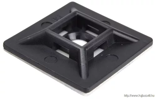 TRACON TALP281 Öntapadós/csavarozható, 4oldalt fűzhető kötegelő talp,fekete 28×28mm, d=5,7mm, PA6.6, 3M