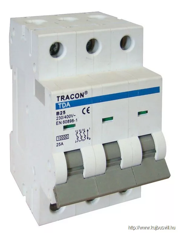 TRACON TDA-3B-20 Kismegszakító, 3 pólus, B karakterisztika 20A, B, 3P, 10kA