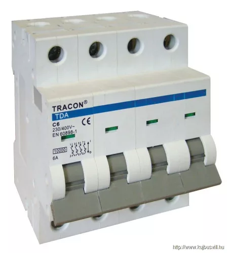 TRACON TDA-4B-13 Kismegszakító, 4 pólus, B karakterisztika 13A, B, 4P, 10kA