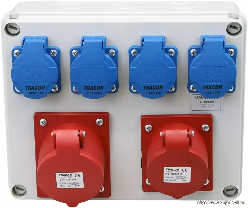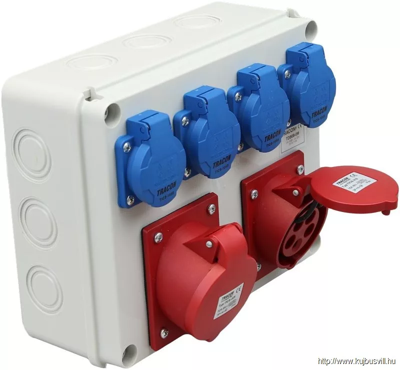 TRACON TDB08-0M Csatlakozó doboz, védelem nélkül Out:4×SCHUKO+1×16A(3P+N+E)+1×32A(3P+N+E)