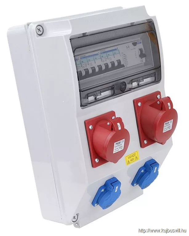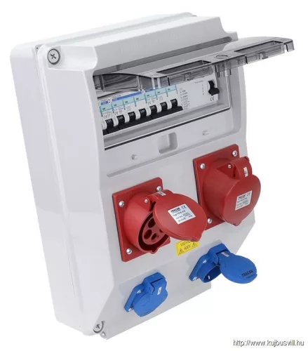 TRACON TDB12-12MVSK Csatlakozó doboz védelemmel, vezetékezett, készre szerelt Prot.:RCCB,MCB,Out:2×FRENCH+1×32A(3P+N+E)+1×16A(3P+N+E)