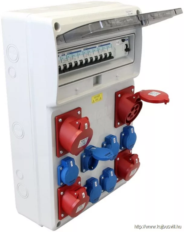 TRACON TDB13-16MV Csatlakozó doboz védelemmel, vezetékezett, készre szerelt Prot.:RCCB,MCB,Out:6×SCHUKO+2×16A(3P+N+E)+2×32A(3P+N+E)