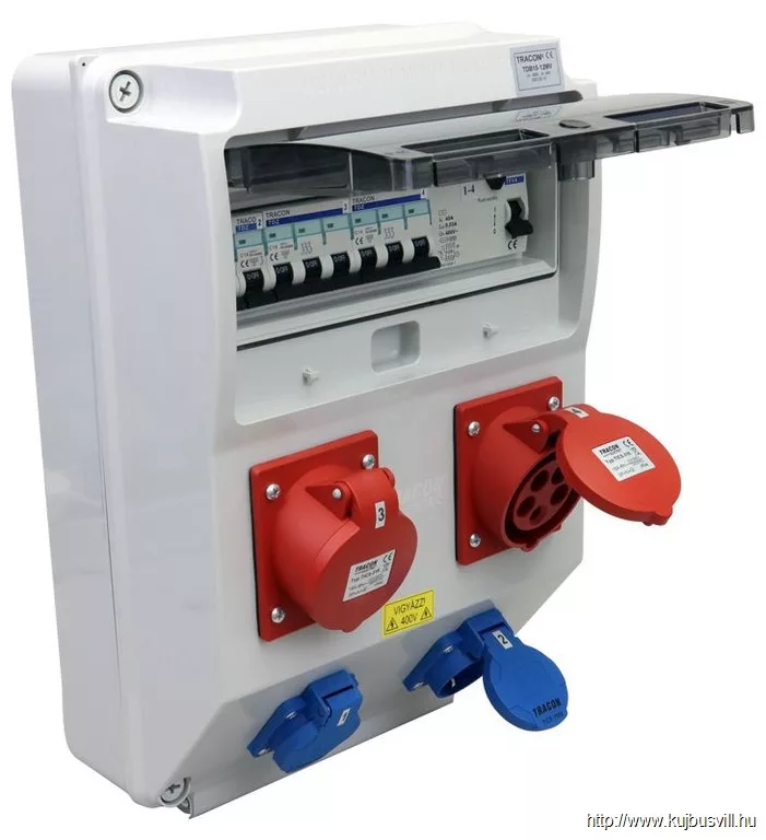 TRACON TDB15-12MV Csatlakozó doboz védelemmel, vezetékezett, készre szerelt Prot.:RCCB,MCB,Out:2×SCHUKO+2×16A(3P+N+E)