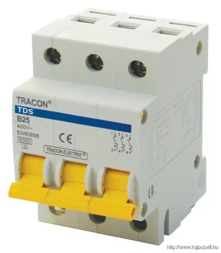 TRACON TDS-3B-50 Kismegszakító, színes karral, 3 pólus, B karakterisztika 50A, 6kA