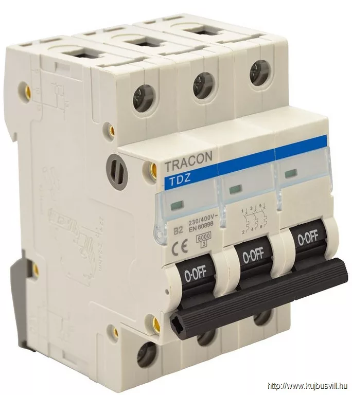 TRACON TDZ-3D-20 Kismegszakító, 3 pólus, D karakterisztika 20A, 6kA