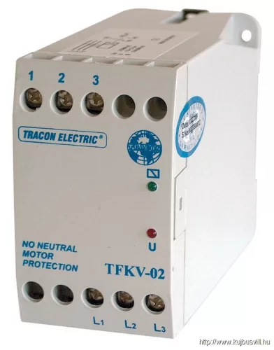TRACON TFKV-02 Védőrelé, feszültségfigyelő 3 vezetékes rendszerhez 3×400V AC ( 0,7-1,2)xUn fix, 5A/250V AC