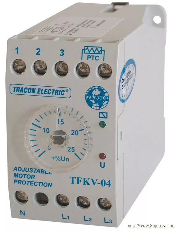 TRACON TFKV-04 Védőrelé, feszültségfigyelő 3 fázisra aszim/túlmel. véd 3x230/400V AC,+/-5% - +/-25%, 5A/250V AC