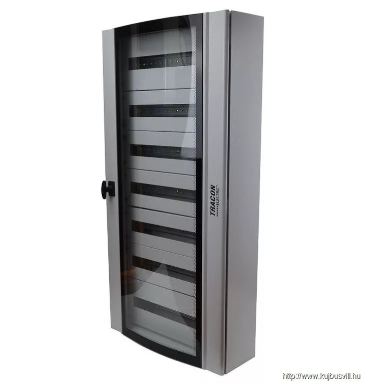 TRACON TGE6012025 Ívelt biztonsági üvegajtós fémelosztószekrény 600×1200×250 / 168M (24×7 rows)