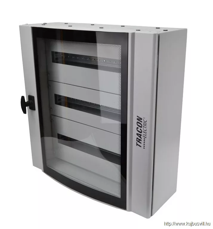 TRACON TGE606020 Ívelt biztonsági üvegajtós fémelosztószekrény 600×600×200mm / 72M (3×24 mod)