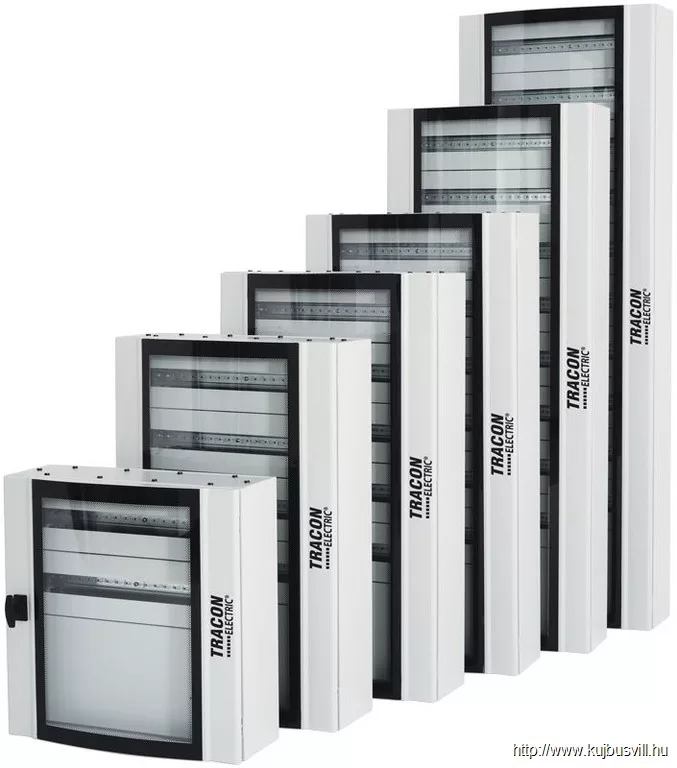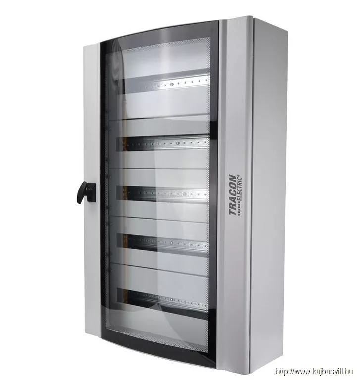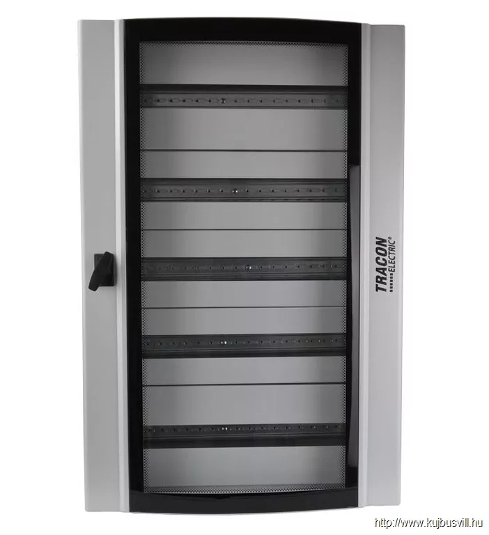 TRACON TGE609020 Ívelt biztonsági üvegajtós fémelosztószekrény 600×900×200mm / 120M (5×24 mod)