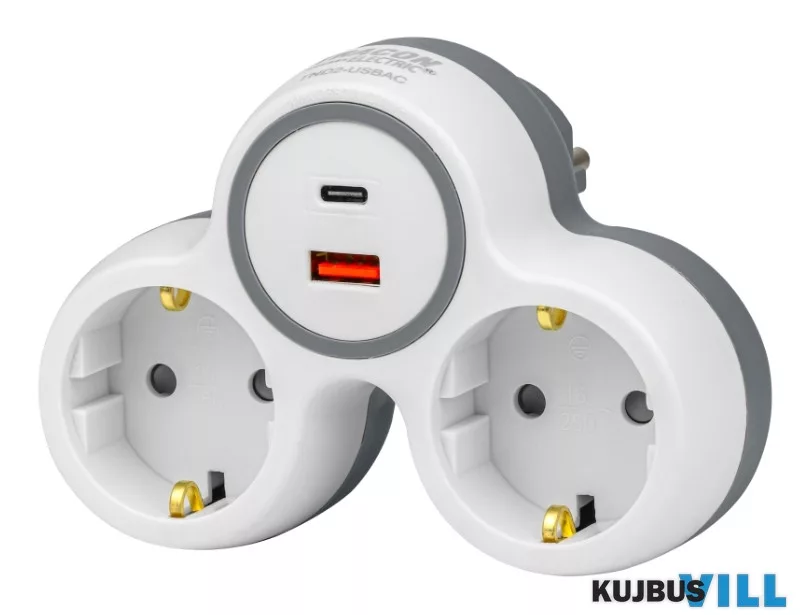 TRACON TND2-USBAC Többférőhelyes átalakító csatlakozó, USBC+USBA, szürke+fehér 2×SCHUKO, max.16A, 230VAC, 3680W, PP, USB-A+C:5V, 3,4A 17.0W