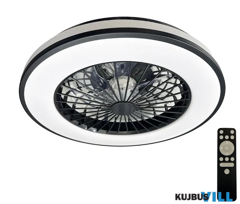 Ventilátoros LED mennyezeti lámpa 48W, opál, távir., fekete/fehér, IP44 - LCL6346